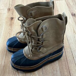 Sorel Caribou waterproof Tan and Black Leather Lace-Up Winter Boots