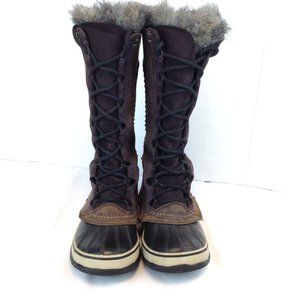 Pre-owned condition, some wear on the soles, the back Sorel leather tag is curled and the fur on the felt liners is a bit matted. Please see pictures for details.