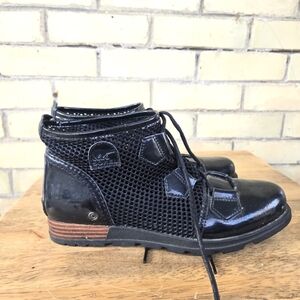 Charcoal boots featuring bold crimson laces. Perfect for everyday adventures.