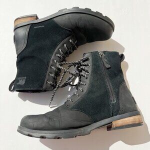 Sorel Emelie Black Combat Waterproof Ankle Boots