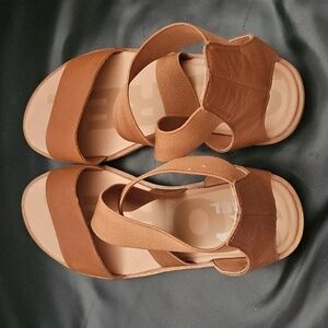 Sorel Flat Tan 100%Leather Strap On Women's Sz 6 US Ella III Flat Sandal