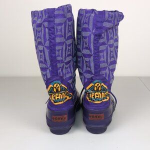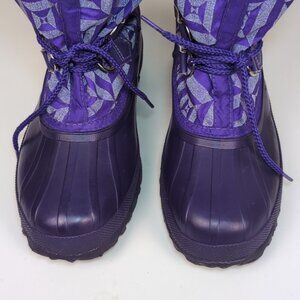 Perfect for day and night outdoor winter activities. Felt lined. Reflective IllumiNite fabric technology for high visibility. Waterproof rubber soles with traction. Lace up at the base of the shaft. Pull on style. Unique purple color with Shredder logo. Rare find!