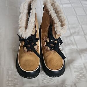 Stay warm and stylish with Sorel's tan winter boots. Perfect for cold weather, these boots offer comfort and durability.