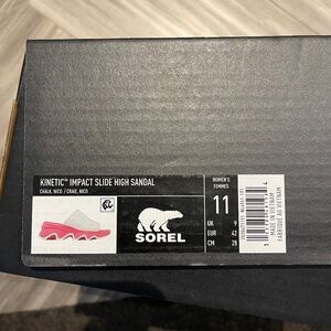 Sorel Kinetic Impact Slide High Sandal in "chalk" and "hot pink" color.