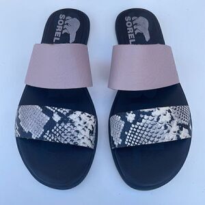 Sorel Leather Snake Print Slides Womens Sz 6 Ella Black Vapor Sandals Slip On