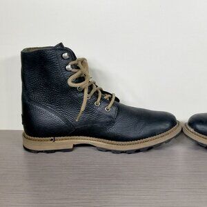 Sorel Madson 6 Lace-Up Boots, Black Pebbled Leather, Mens Size 8.5 / 41.5