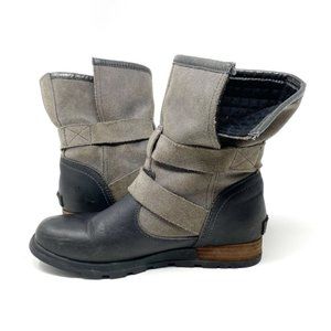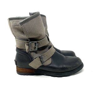 Sorel | Major Moto Boots Size EU 36 / US 5 Black Leather Grey Suede Pull On