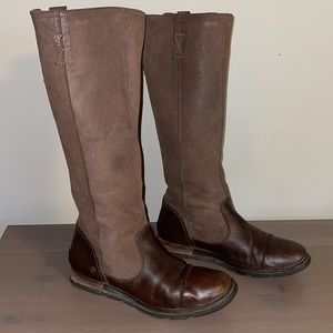 VGUC Sorel “Major Tall” two tone brown leather and suede boots in women’s size seven and a half (7 1/2).