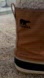 New condition, a hardly noticiable white spot in one boot, and a normal brow spot on the rubber part of the other boot.