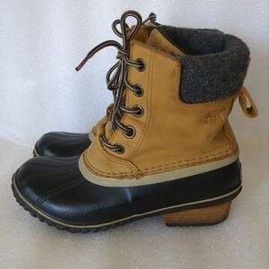 Sorel Slimpack II Women's Waterproof Duck Boots Brown Leather Mid Calf Size 7