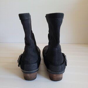 Sorel Slimshortie Boots Size 7 Black Suede and Leather Moto Buckle Pull On