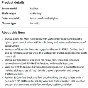 SOREL Caribou waterproof suede & canvas high-top sneaker style ankle boots. Men's Size US 8 / EU41