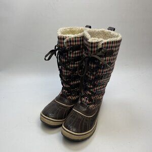 Sorel Winter Boots Wom Sz 8 US Red Plaid Lace Up Waterproof Sherpa Fleece Lined