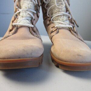 Sorel Women Boots Phoenix Short Lace Lux Ankle US 8 Beige Leather Lace Up 952