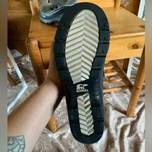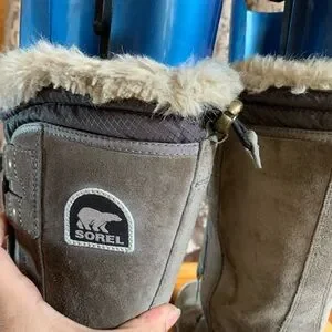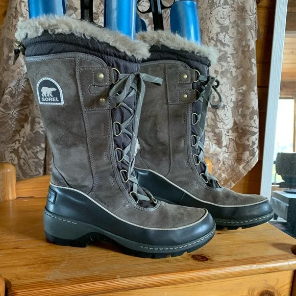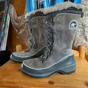 Sorel boots with fur lining and lace-up front. Durable and stylish.