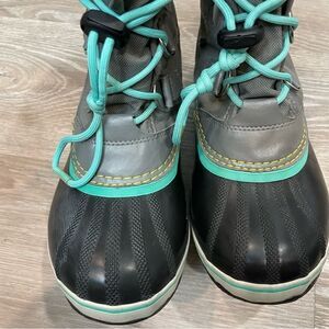 Sorel YOUTH YOOT PAC NYLON BOOT Waterproof Snow Boots in Gray Blue Sherpa Wool