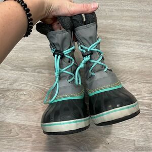 Sorel YOUTH YOOT PAC NYLON BOOT Waterproof Snow Boots in Gray Blue Sherpa Wool