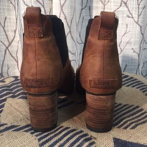 Sorel leather heel boots with stretch top