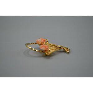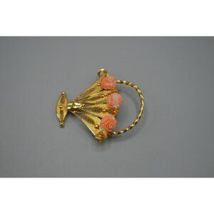 Vintage brooch of a pretty filigree flower basket. Not sure what the stones are made of. Marked Sorrento, 1/20 12K gold filled. Likely made in Italy. 1 3/4" long.