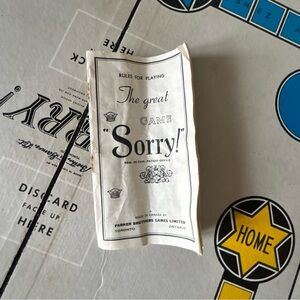 Classic Sorry! board game with colorful pieces. Fun for family game night.