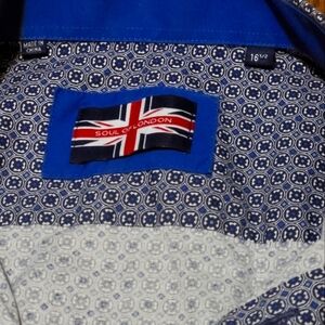 Soul of London Men's Dress Shirt 16.5 | Blue Pattern | Modern Fit
