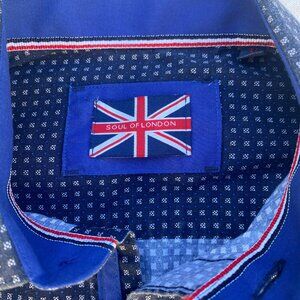 Stay sharp and stylish with this London brand shirt. Featuring a classic collared neckline, button closure, and long sleeves, this woven shirt in a vibrant blue hue is perfect for all seasons. The regular fit and spread collar add a touch of sophistication, making it ideal for both casual and dressier occasions. Made for the modern man who appreciates quality and timeless design, this Soul of London shirt is a must-have addition to any wardrobe.