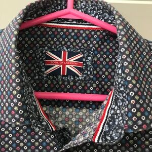 Soul of London Men’s Shirt US 15 1/2 Navy Colour circle Pattern