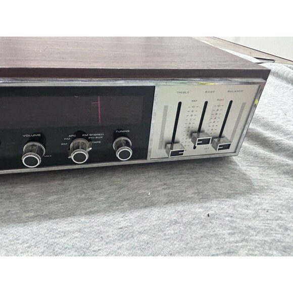 Powers on. FM band tested and speaker outs tested. Tunning dial works with a slight clicking sound on movement. Tried to play an 8 track, but doesnt seem to work or o dont understand how to work it.