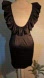 Chic black dress with a daring backless design. Features elegant ruffles. Ideal for stylish evenings.