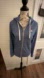 Comfortable blue hoodie with zip-up front. Features drawstring hood and subtle logo detail; beautiful quality; material has good weight to it; just right amount of stretch; pit to pit 18 inches; length 25 inches; shoulder to cuff 24 inches; Size Mπππ