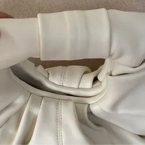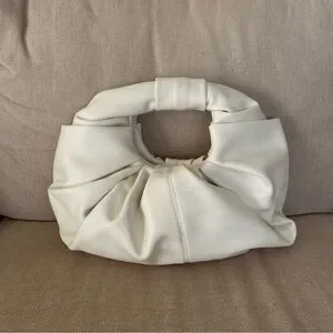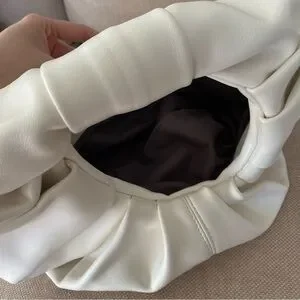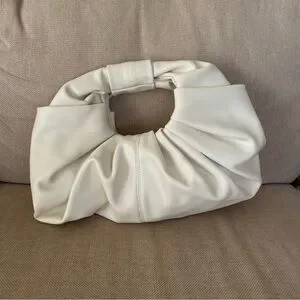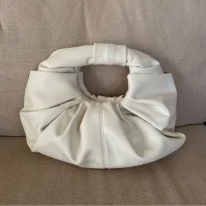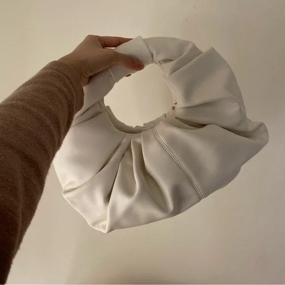 Stylish white handbag with a unique ruched design. Perfect for any occasion.