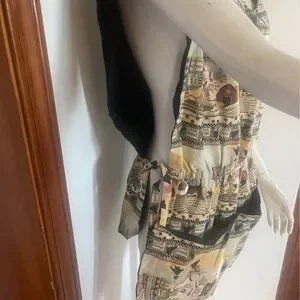 Stylish kitchen apron with intricate patterns. Features a blend of cream and brown tones. Perfect for adding flair to your cooking routine.