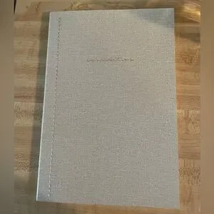 Elegant gray notebook with 'inspiration' embossed in gold. Perfect for jotting down thoughts and ideas.