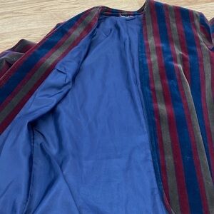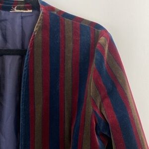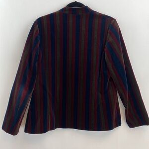 Stylish blazer with bold vertical stripes. Open front design. Perfect for a chic look.