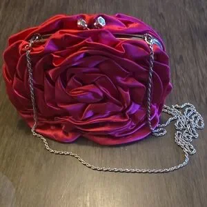 This striking red clutch from Source Unknown features a unique ruched texture that adds depth and elegance to its design. Crafted from a satin-like material, the bag's sheen beautifully highlights its rich crimson hue. Ideal for special occasions, this clutch is both stylish and sophisticated.