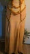 Elegant tan maxi dress with intricate detailing. Perfect for beach outings.