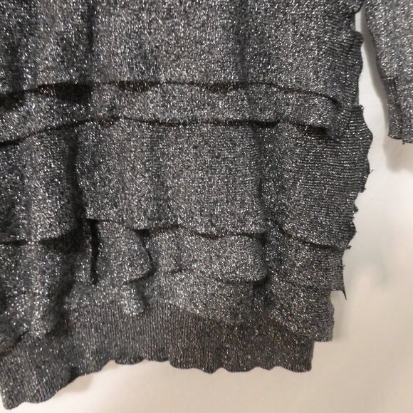 Condition: Gently Used. Ruffle Hem is staggered and frayed in a few spots