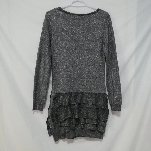 Source Unknown | medium | Shimmering Ruffle Hem Knee Length Long Sleeve Dress