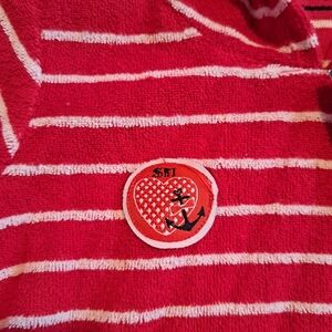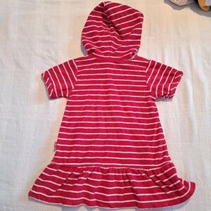 Souris Mini girls 18 months red & white striped swim cover up, hood attached, New