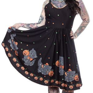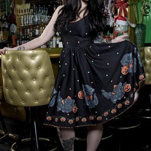 NWT, pockets, adjustable straps, 17" pit to pit measured flat, 14" at waist, fabric is not a true deep black. 100% polyester. With it's full skirt, this flirty dress was made for twirling!