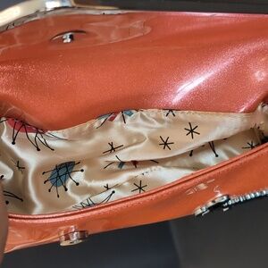 Sourpuss woman's orange faux leather retro style clutch.