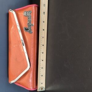 Sourpuss Womans Orange Faux Leather Retro Style Clutch.