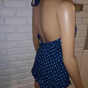 South Point Ladies Size 12 Navy with Teal Polka Dots Tankini Top