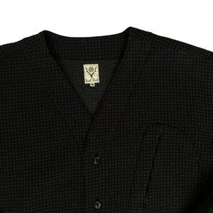 - Fleece cardigan with baseball-style collar, full button front, 1 zippered chest pocket, button cuffs and a curved hem