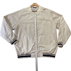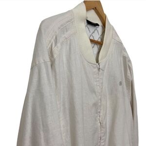 Southpole linen blend ecru white zip up jacket pockets lined black varsity 3XL