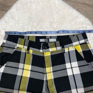 Southpole Size 18 / 30 Long Plaid Shorts Black Yellow 12" Inseam Golf Casual Chino