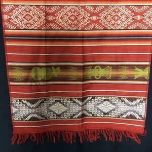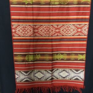 Orange green, with fringe, EUC, 64” long by 20” wide