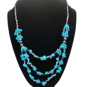 Southwest Style Faux Turquoise Nugget & Silver Hematite Tiered Necklace