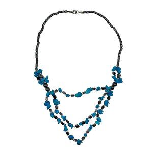 Pre-owned and gently used handcrafted dyed howlite chip and hematite beaded necklace, it is 18" long measured end to end.