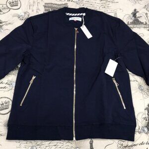 Stand collar and elastic rib cuffs & hem